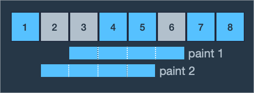 - 예제 1번은 2, 3, 6번 영역에 페인트를 다시 칠해야 합니다. 롤러의 길이가 4미터이므로 한 번의 페인트칠에 연속된 4개의 구역을 칠할 수 있습니다. 처음에 3, 4, 5, 6번 영역에 페인트칠을 하면 칠해야 할 곳으로 2번 구역만 남고 1, 2, 3, 4번 구역에 페인트칠을 하면 2번 만에 다시 칠해야 할 곳에 모두 페인트칠을 할 수 있습니다.2번보다 적은 횟수로 2, 3, 6번 영역에 페인트를 덧칠하는 방법은 없습니다. 따라서 최소 횟수인 2를 return 합니다.